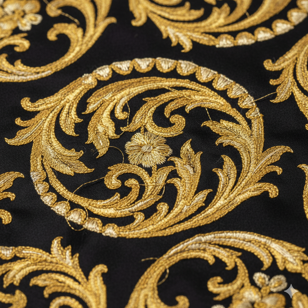 Sumptuous sofas and armchairs feature the Barocco pattern in rich jacquard fabrics, with gold threading that catches light from every angle. Silk cushions showcase intricate scrollwork in jewel tones—emerald green, sapphire blue, and ruby red—creating focal points that command attention. The 2025 collection introduces a modernized Barocco variant called “Barocco Evolution,” where traditional acanthus leaves intertwine with contemporary geometric elements, appealing to those who desire classic luxury with a modern edge.